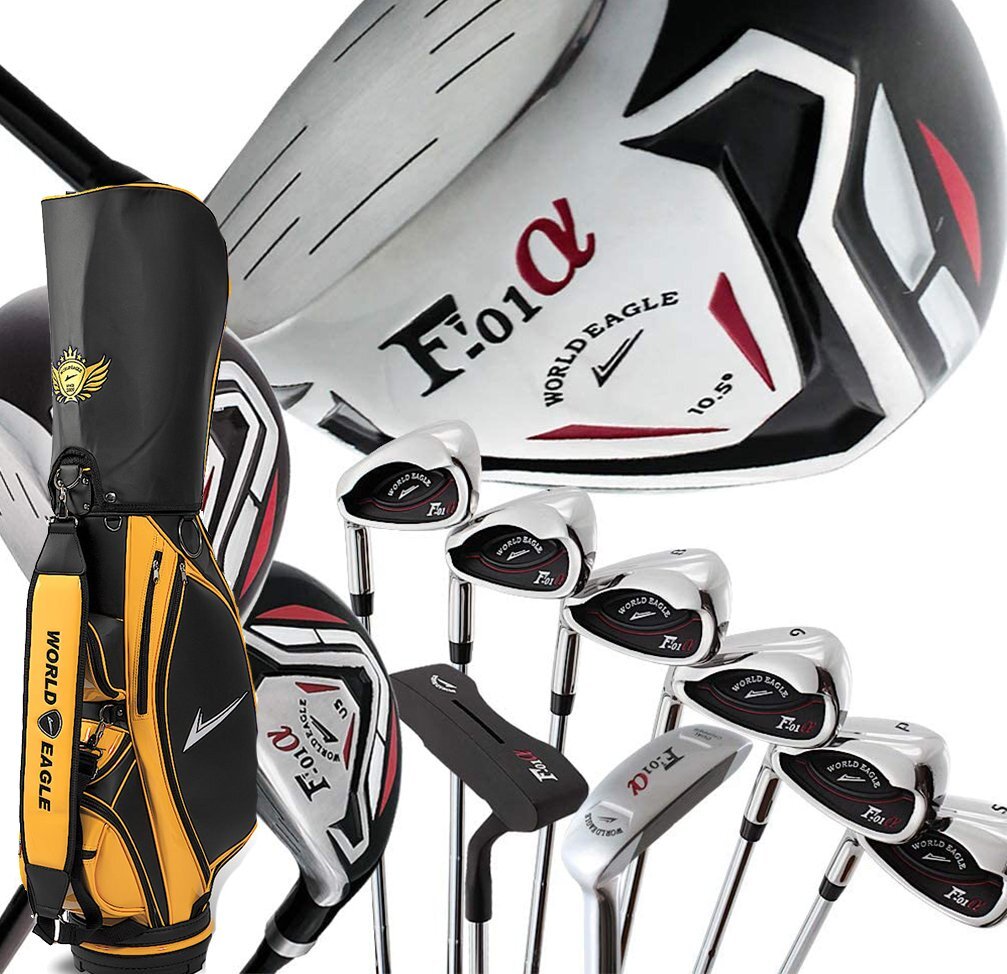 - F-01α クロスモデル メンズゴルフクラブセット CBX007 サンオレンジカラーカートバッグ付 左利き用 フレックスR[33794]