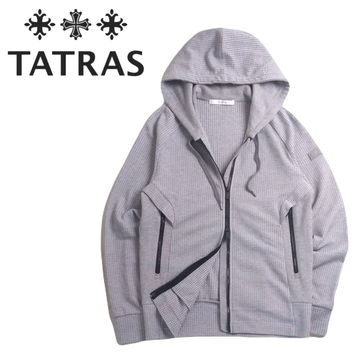 - 極美品 溢れる高級感 TATRAS 蓄熱保温 ストレッチ ワッフル スウェット フルジップ パーカー ジャケット メンズ02 タトラス グレー 2511278