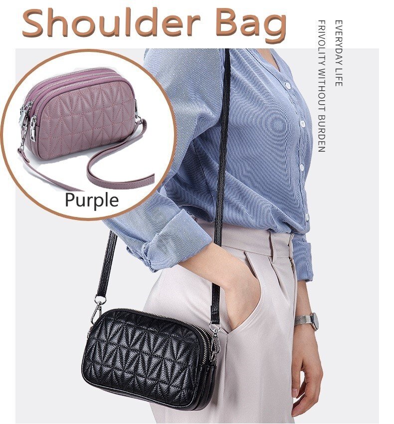 - ショルダーバッグ 牛皮 パープル レザー シンプル 小物 スマホ カード 鍵 たばこ など n530