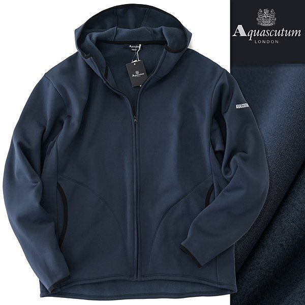 > 新品 1.7万 アクアスキュータム 裏フリース 4WAYストレッチ フルジップ パーカー M 紺 【I43404】 秋冬 メンズ ジャージー フーディー