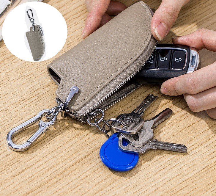 - キーケース 本革 グレー レザー 鍵入れ 牛革 シンプル レザーキーケース キーリング キーフック n520