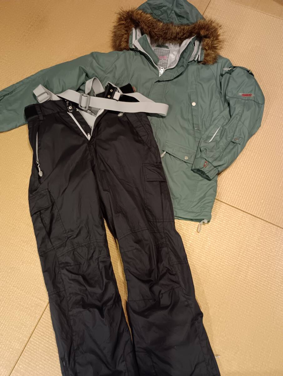 > スキーウェア 上下セット グリーン系 ブラック レディース 中古 スノーウエア M~L 9~11号 モスグリーン 美品