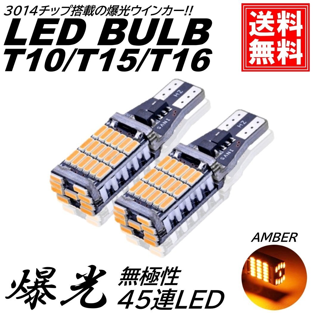 > 高輝度 T10/T15/T16 爆光 LED 45連 ウインカー球 ターンランプ 方向指示 ポジション球 DC12V スモールランプ 無極性 アンバー