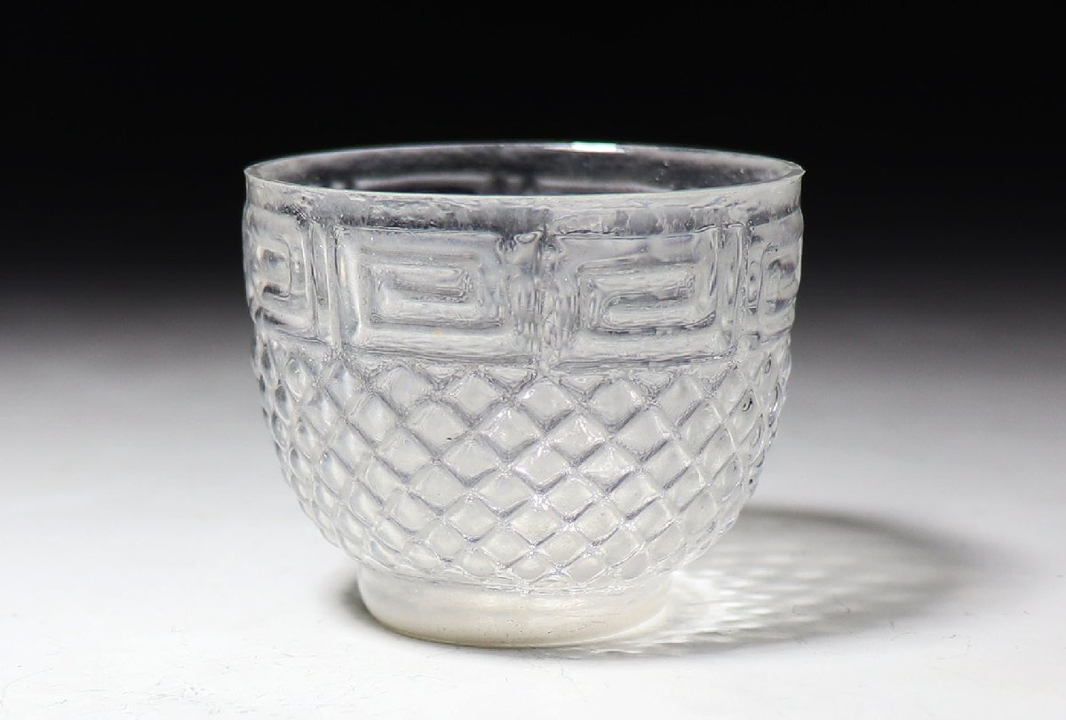 - 【桃】酒器ぐい呑み:江戸ガラス霰雷紋猪口