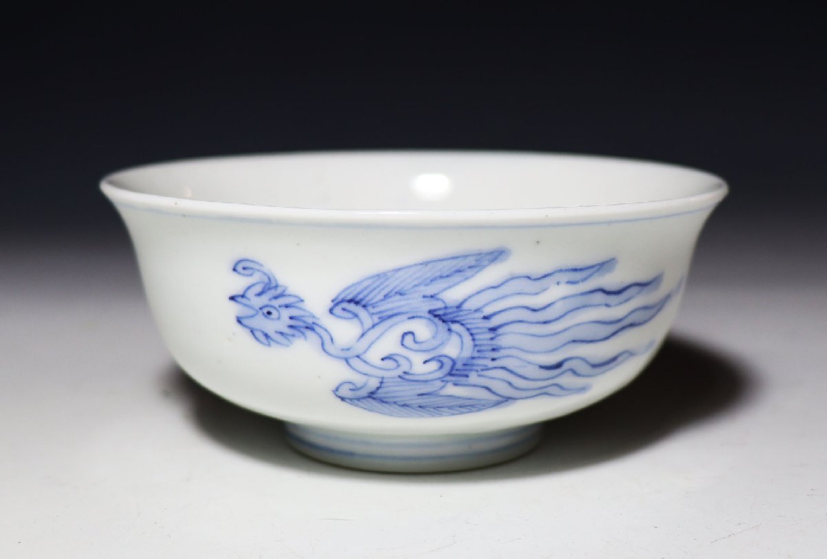 - 【桃】酒器ぐい呑み:平戸染付鳳凰図猪口