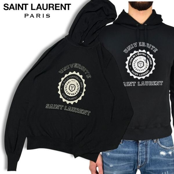 - 39 国内正規品 SAINT LAURENT PARIS サンローランパリ 480125 Logo Knit Hooded ウール ロゴ ニット フーディー パーカー セーター S