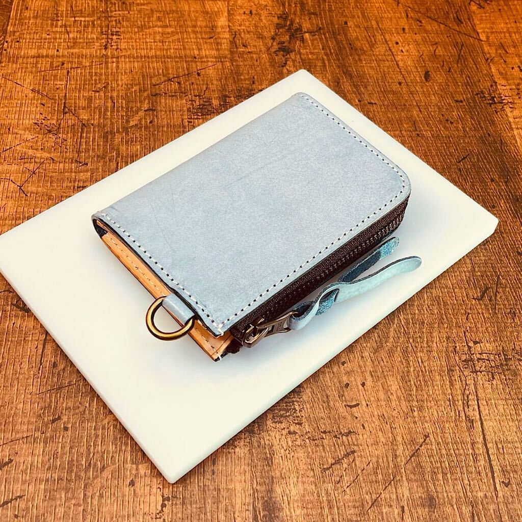 - 手のひらサイズ ブライドルレザー スリム ミドルウォレット メンズ 二つ折り 財布 L字ファスナー 男 新品 未使用 1円 一円 本革 ブルー