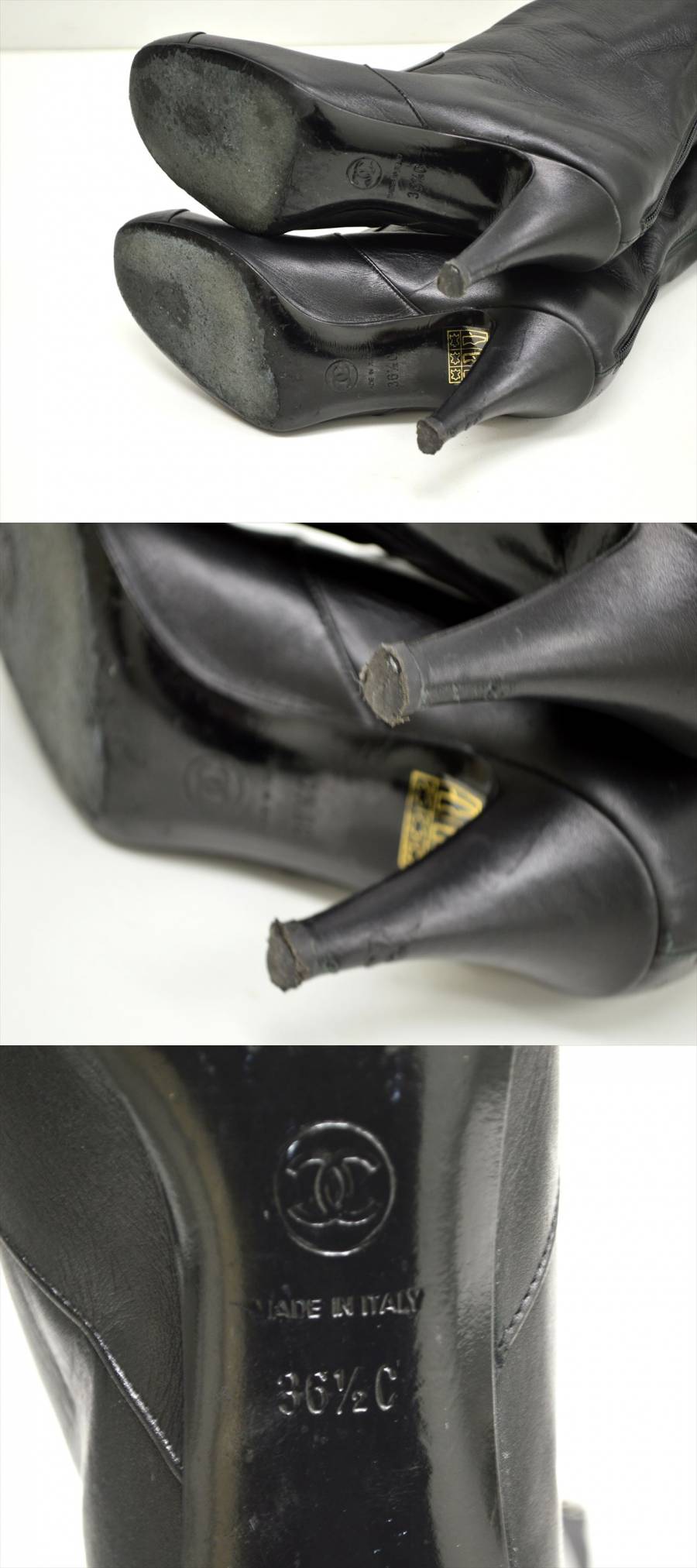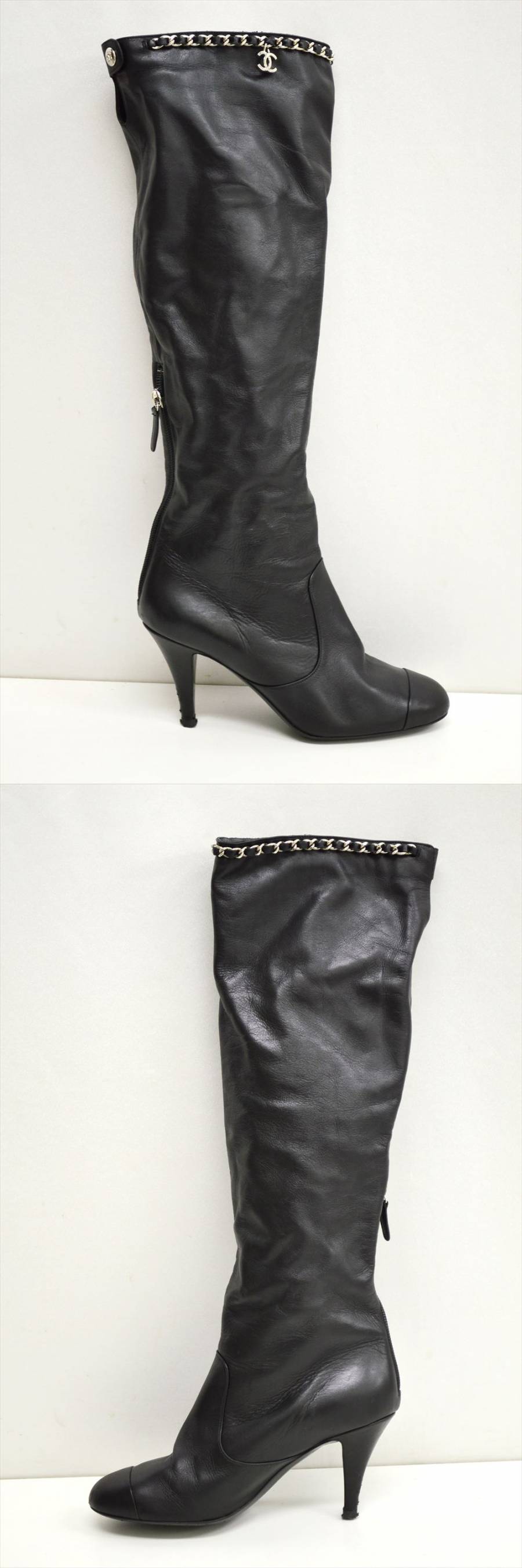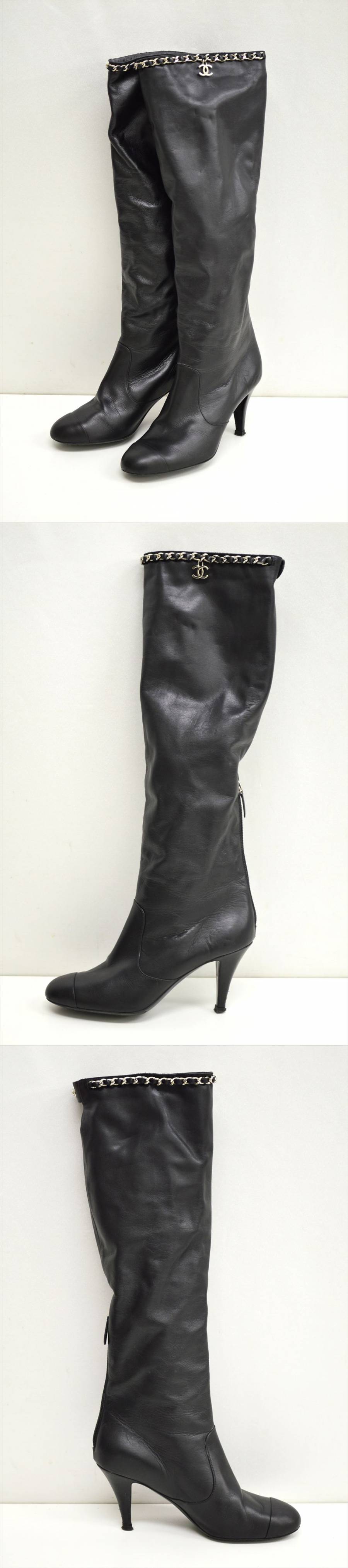 - TE1●中古品●CHANEL シャネル G27250 ココマークチャーム チェーン レザーロングブーツ ブラック 36 1/2
