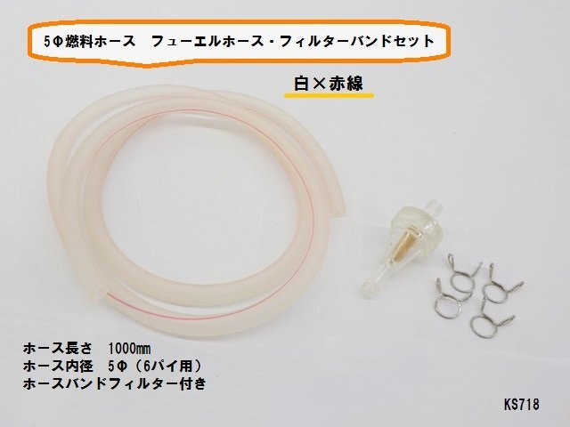 - KS★☆5φ燃料ホース フューエルホース フィルターバンドセット(白×赤線)(バイク・ガソリン)