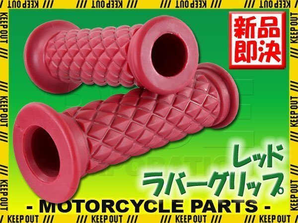 > ダイヤモンドグリッド 22.2mm 貫通 クラシック レッド 汎用 ハンドル グリップ バイク オートバイ W400 エイプ YB125SP テンプター マッハ3