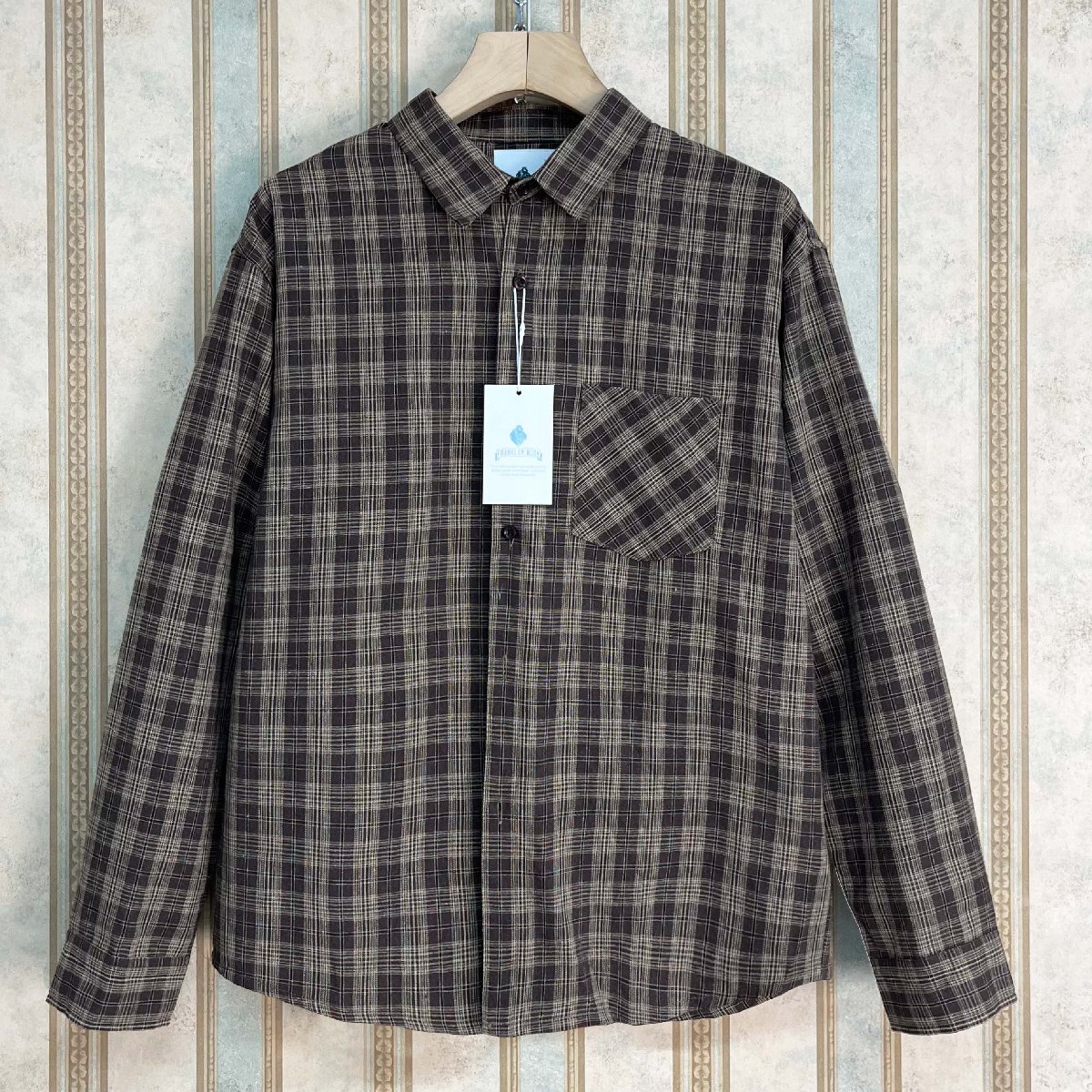 - 高級 定価4万 FRANKLIN MUSK・アメリカ・ニューヨーク発 長袖 シャツ リネン混 通気 薄手 チェック柄 折り襟 カジュアル 紳士 通勤 サイズ3