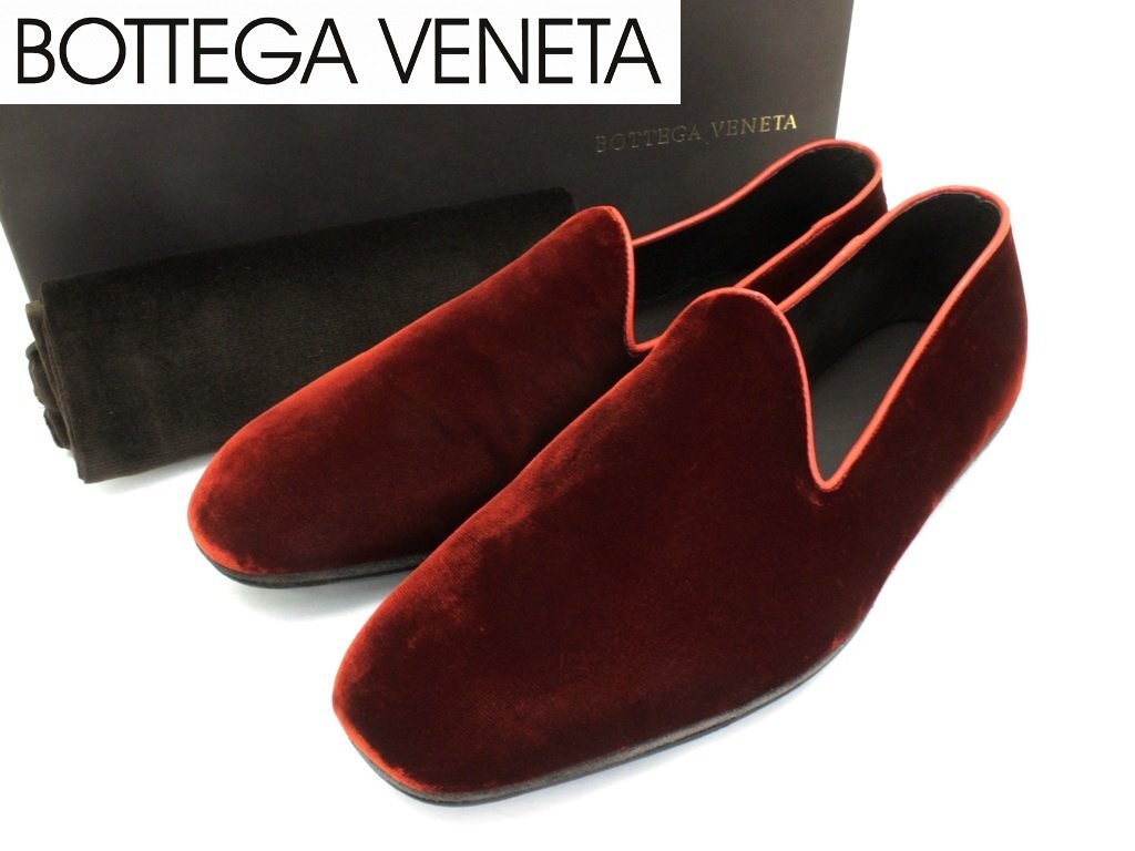 > ●21万新品◆44=29cm◆ボッテガヴェネタ 濃赤ベルベットスリッポンローファー 1円