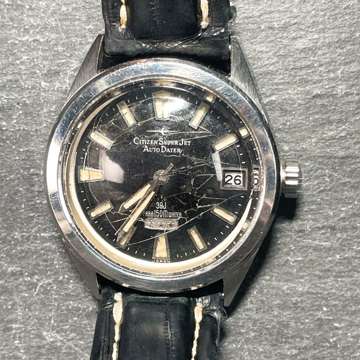 > CITIZEN シチズン SUPER JET AUTODATER 51202-Y 腕時計 アナログ 自動巻き 3針 カレンダー ブラック文字盤 レザーバンド ラウンド