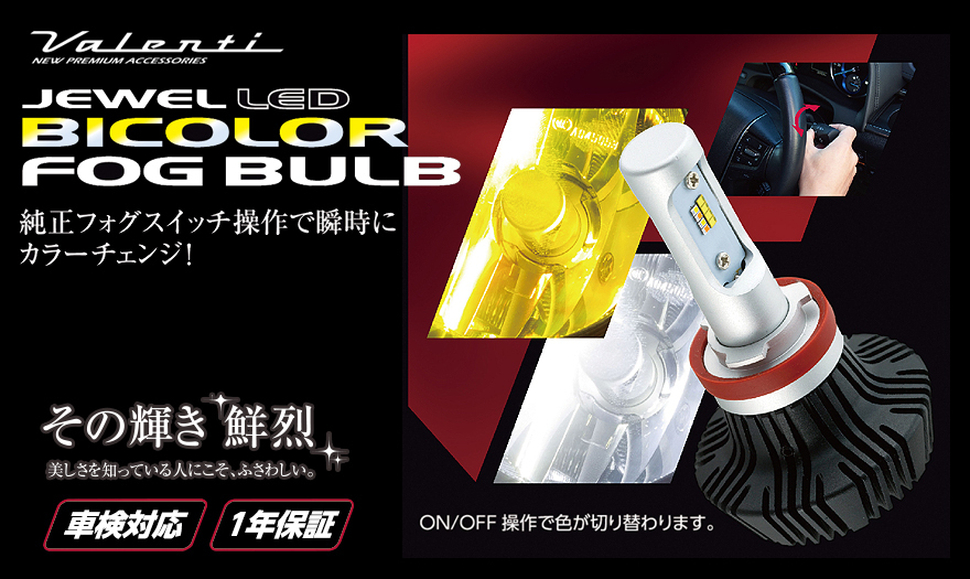 > ヴァレンティ LED HB4 ホワイト:6000K 3800lm イエロー:2800K 2800lm バイカラーLEDフォグバルブ 2色 ジュエル