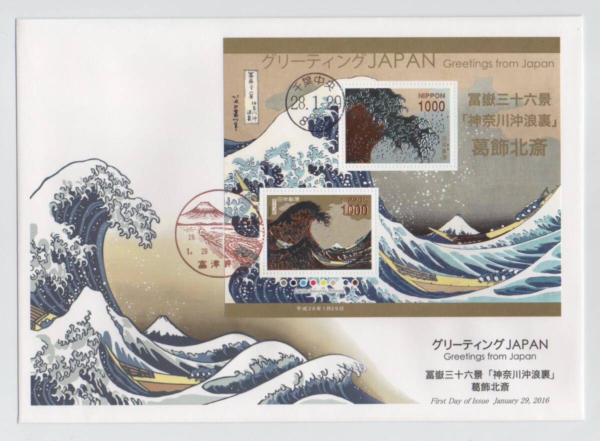 - ◆FDC2◆平成28年 グリーティングJAPAN 冨嶽三十六景 神奈川沖浪裏 2000円シート貼 解説書・説明書無し
