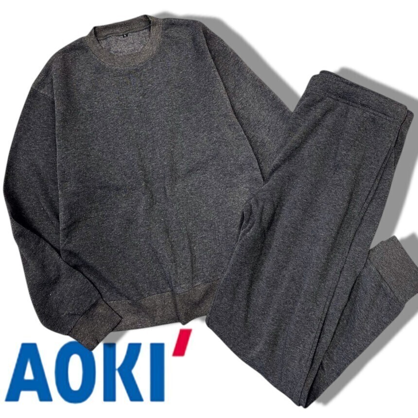 > AOKI 青木 新品 裏毛 やや薄手 スウェット トレーナー パンツ セットアップ ルームウェア パジャマ 2103-038 グレー L▲003▼50213s01