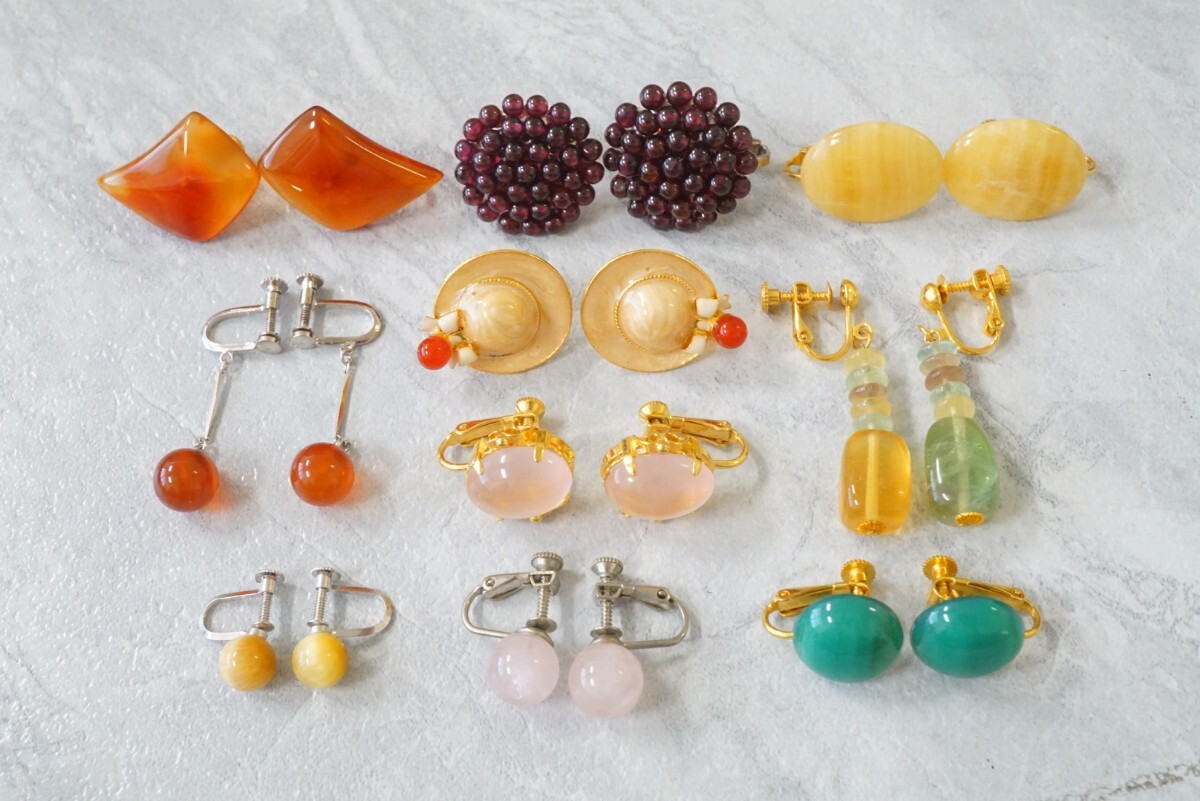 - B205 全て天然石 カラーストーン 色石 両耳揃い イヤリング 10点セット ヴィンテージ アクセサリー 大量 まとめて おまとめ まとめ売り
