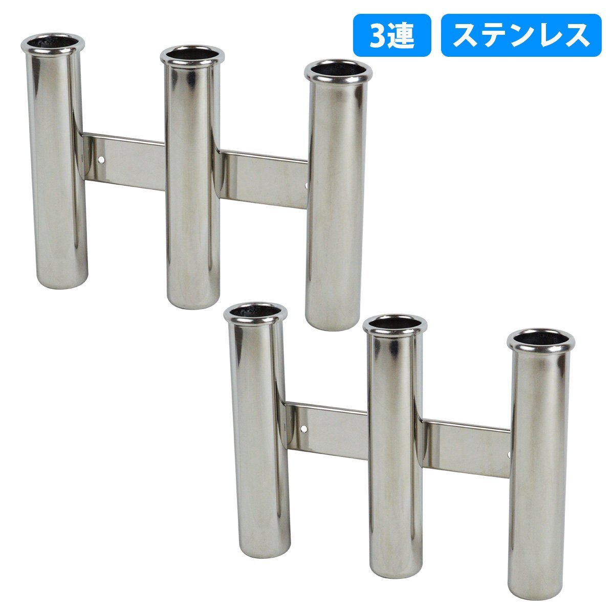 - [3連 2本セット]ステンレス製 ロッドホルダー 釣り 竿 置き 受け 船 ボート 漁船 ロッド スタンド 海 フィッシング 2個