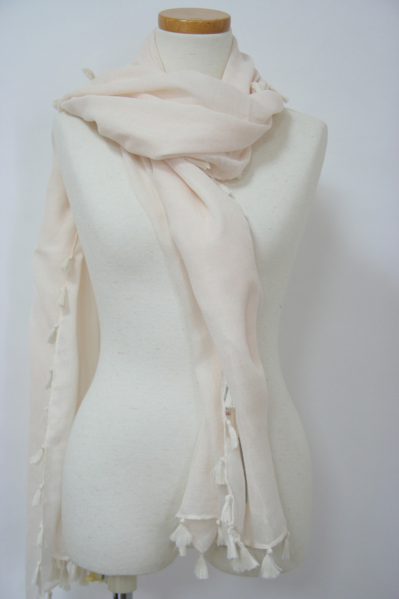 - 送料無料◆通年タイプ◆プレーンカラー◆日焼け紫外線対策◆お洒落アイテム◆ショール◆タッセル付き大判ストール(クリームベージュ)176008
