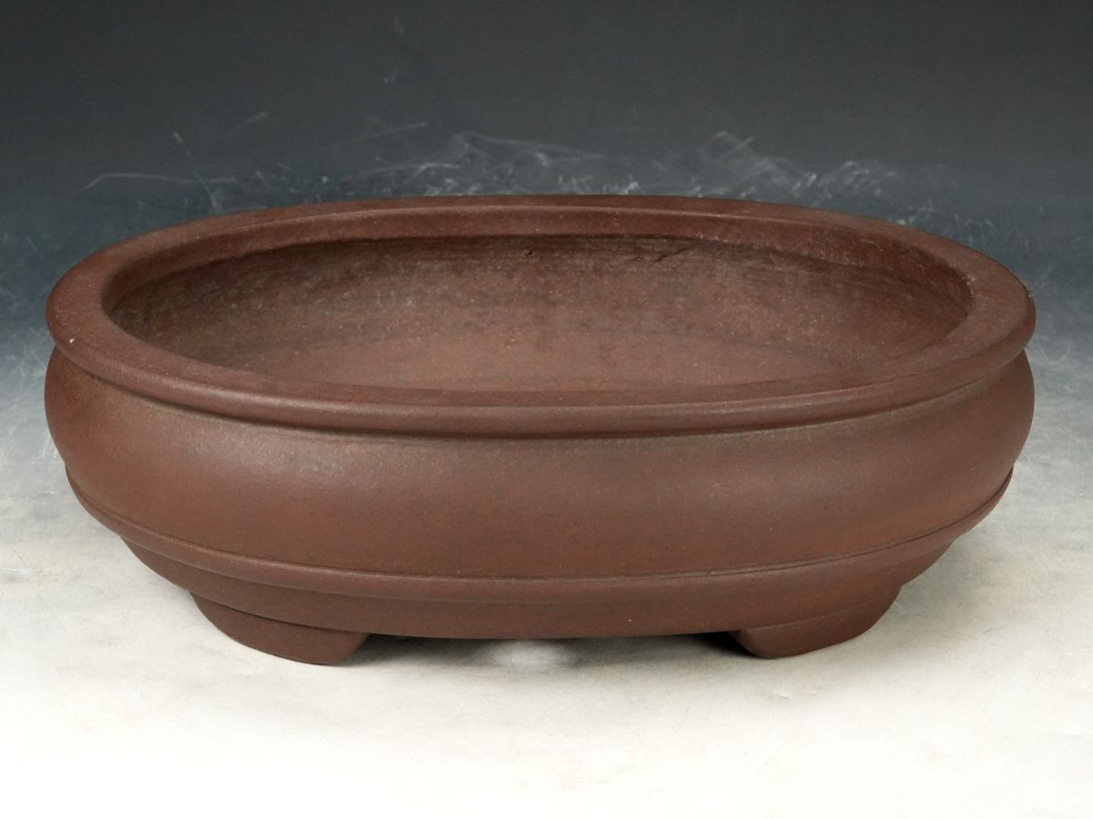 - 【ISBS】人気常滑作家 中野裕士作「裕士紫泥外縁下紐切足袋式楕円鉢」行山窯 泥味最高 土目抜群 実用性抜群 間口約28.5cm[Y2025112707]
