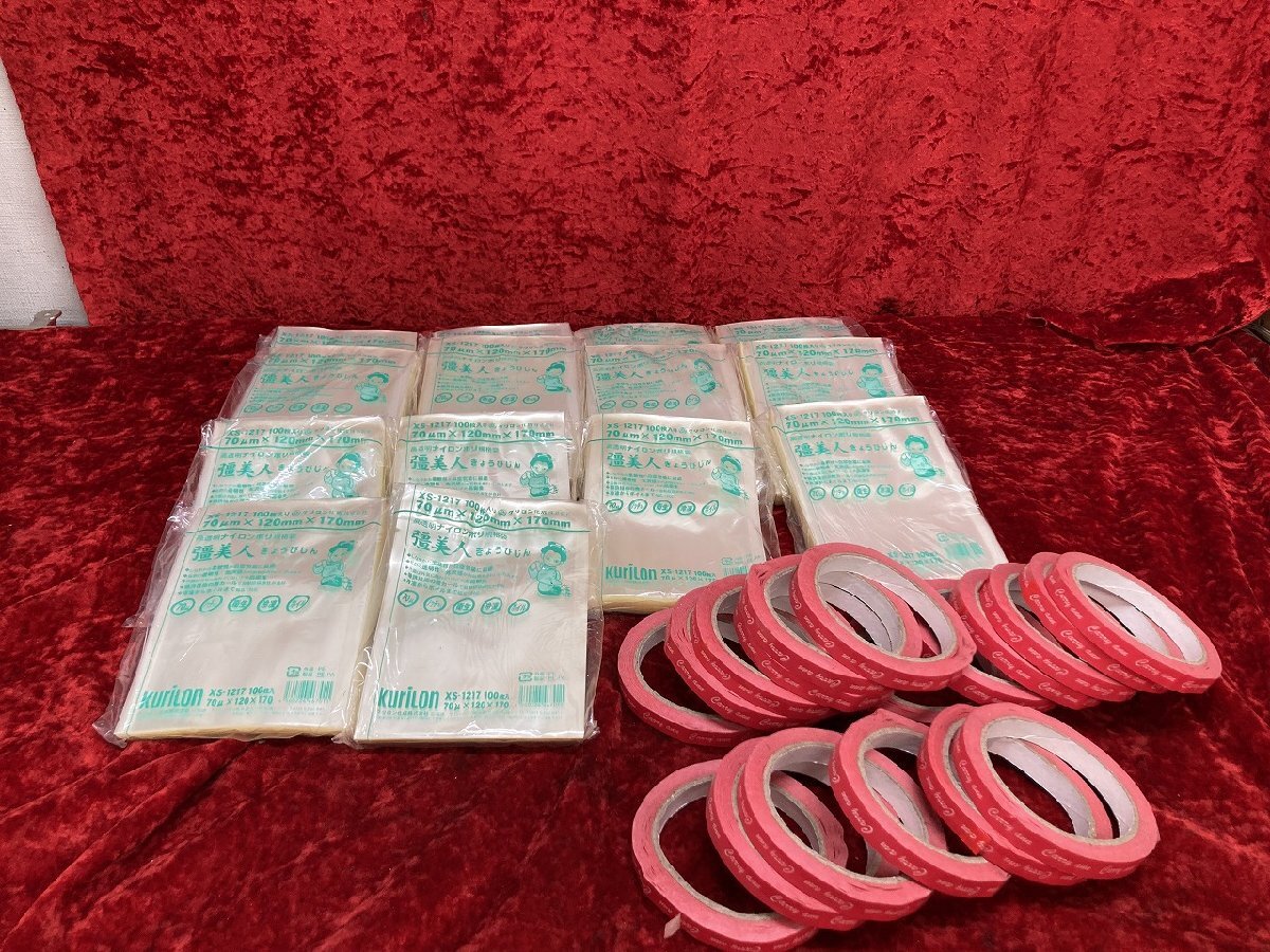 - 11-27-717 ◎ L 厨房用品 店舗用品 業務用 ラッピング用品 ナイロンポリ袋100枚×14 ラピングテープ×18 まとめ売り 未使用