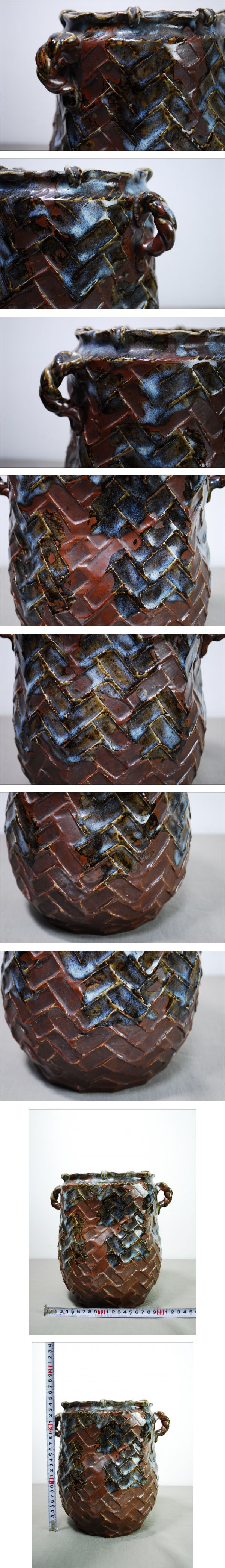 > 壺 花器 花瓶 耳付き/検索用 在銘 骨董 美術品 陶器 花生 美術品【11046】