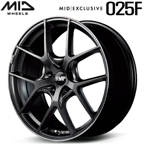 > MID EXCLUSIVE 025F 4本Set セミグロスガンメタ/リムエッジDC/ロゴマシニング 8.5J-20インチ 5穴/PCD114.3+38