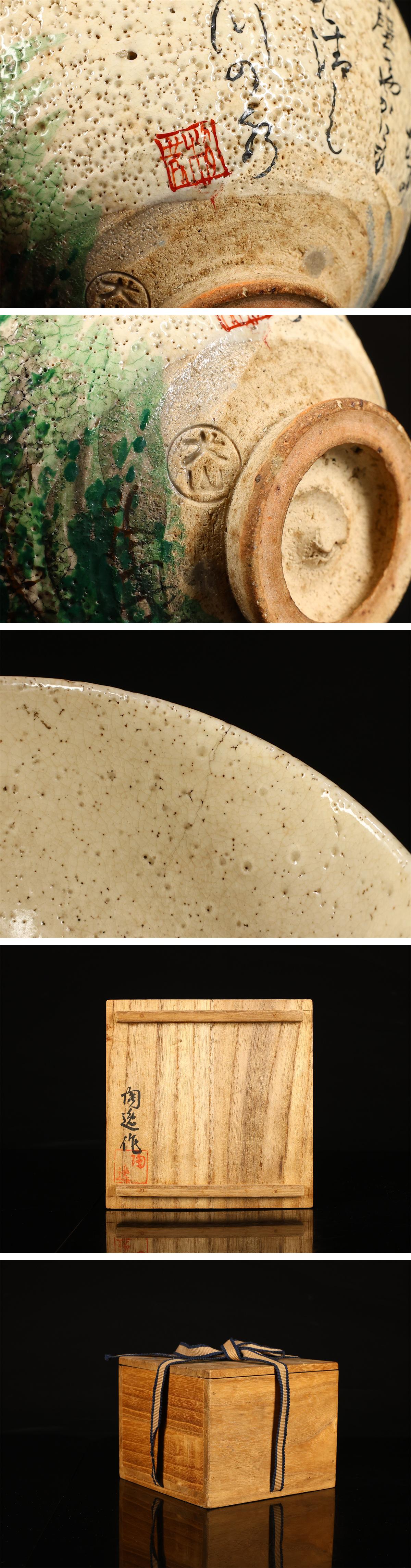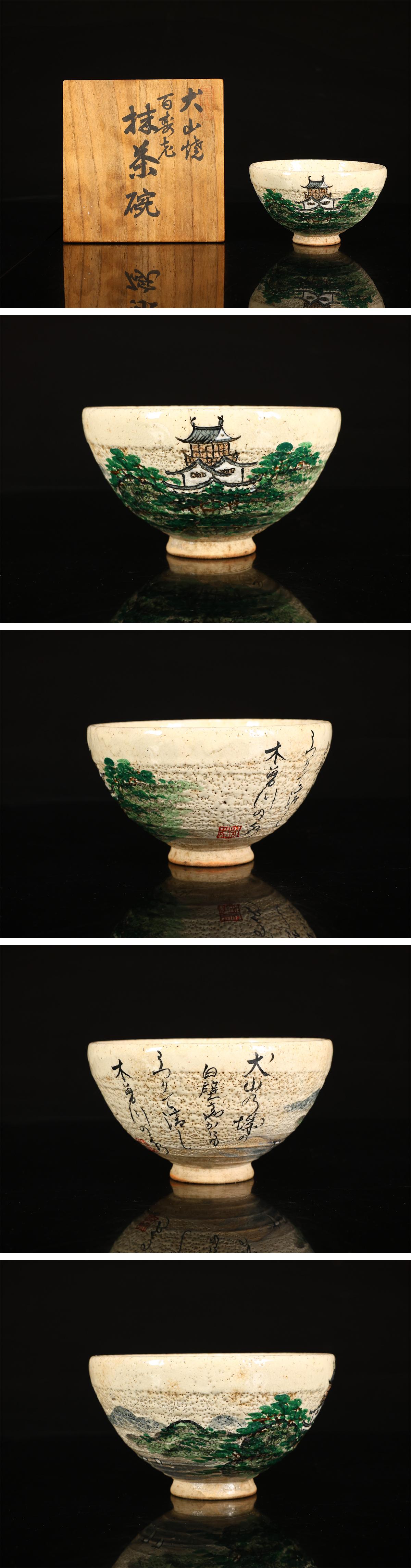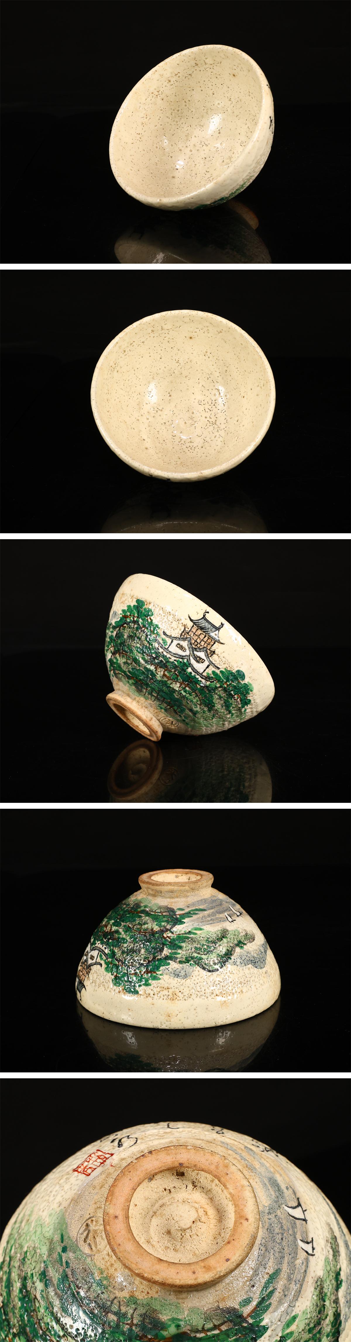 【吉】CN407 時代 犬山焼 【陶逸 作】 山水楼閣文 茶碗/共箱付!拍卖