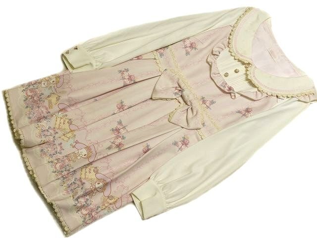 > C46 LIZLISA × Sanrio ワンピース ◇ サイズ0 マイメロディ ピンク × ホワイト ローズ 長袖 リズリサ サンリオ コラボ ▼7K