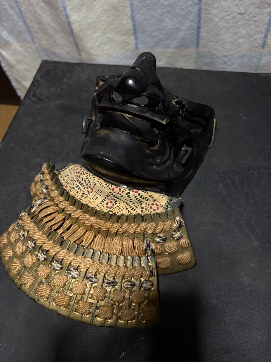 - 【武具】 面【武具 等身大 甲冑 侍道具 美術品 古美術 甲冑鎧 面 部品 パーツ 金具 アンティーク 鎧兜 鉄 革】