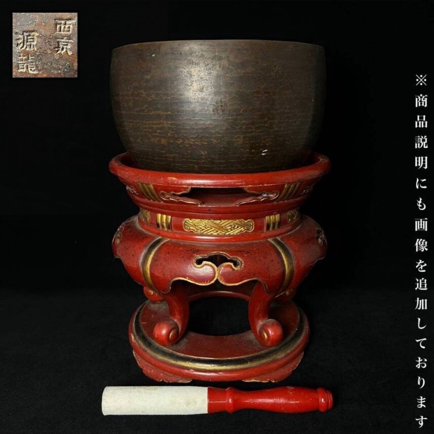 - 某廃寺の引取品 仏教美術 手打西京源龍 寺院仏具 おりん りん棒 台座 木製 金彩 朱塗 お鈴 鳴り物 仏壇 時代物