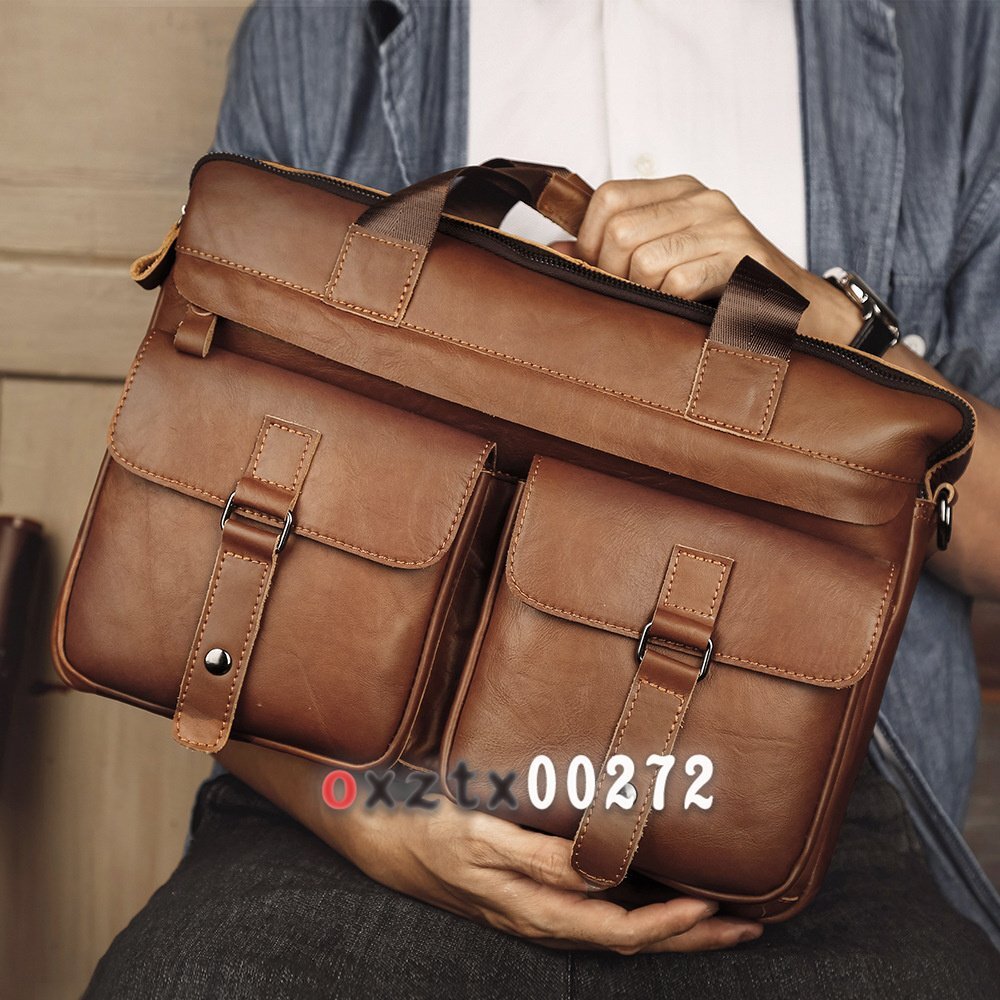 - 牛革メンズカジュアルビジネスブリーフケース 本革ショルダーバッグ 通勤用15.6インチノートパソコンケース