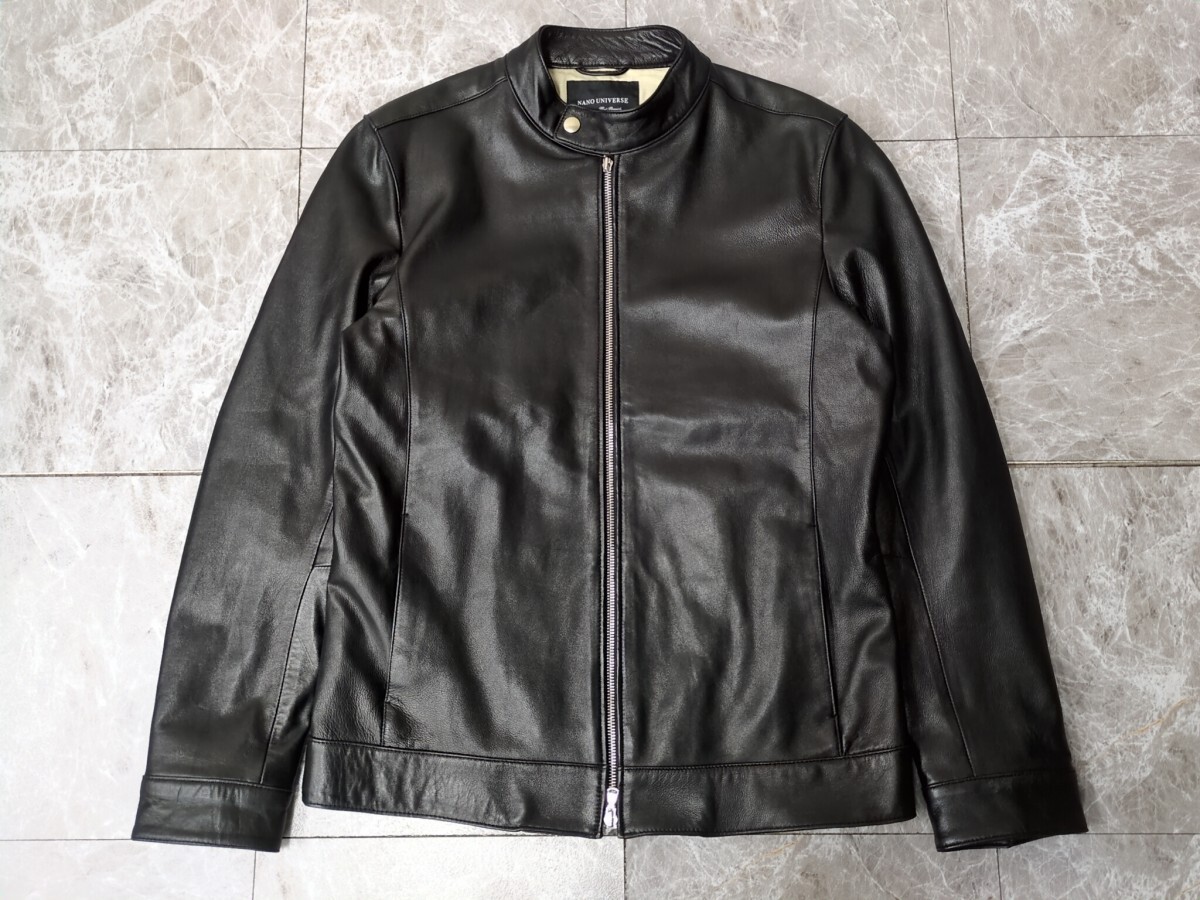 - 4.羊革 NANO UNIVERSE ダブルジップ レザー シングル ライダース ジャケット 皮ジャン ラムレザー 羊革 シープスキン 本革 メンズL y203