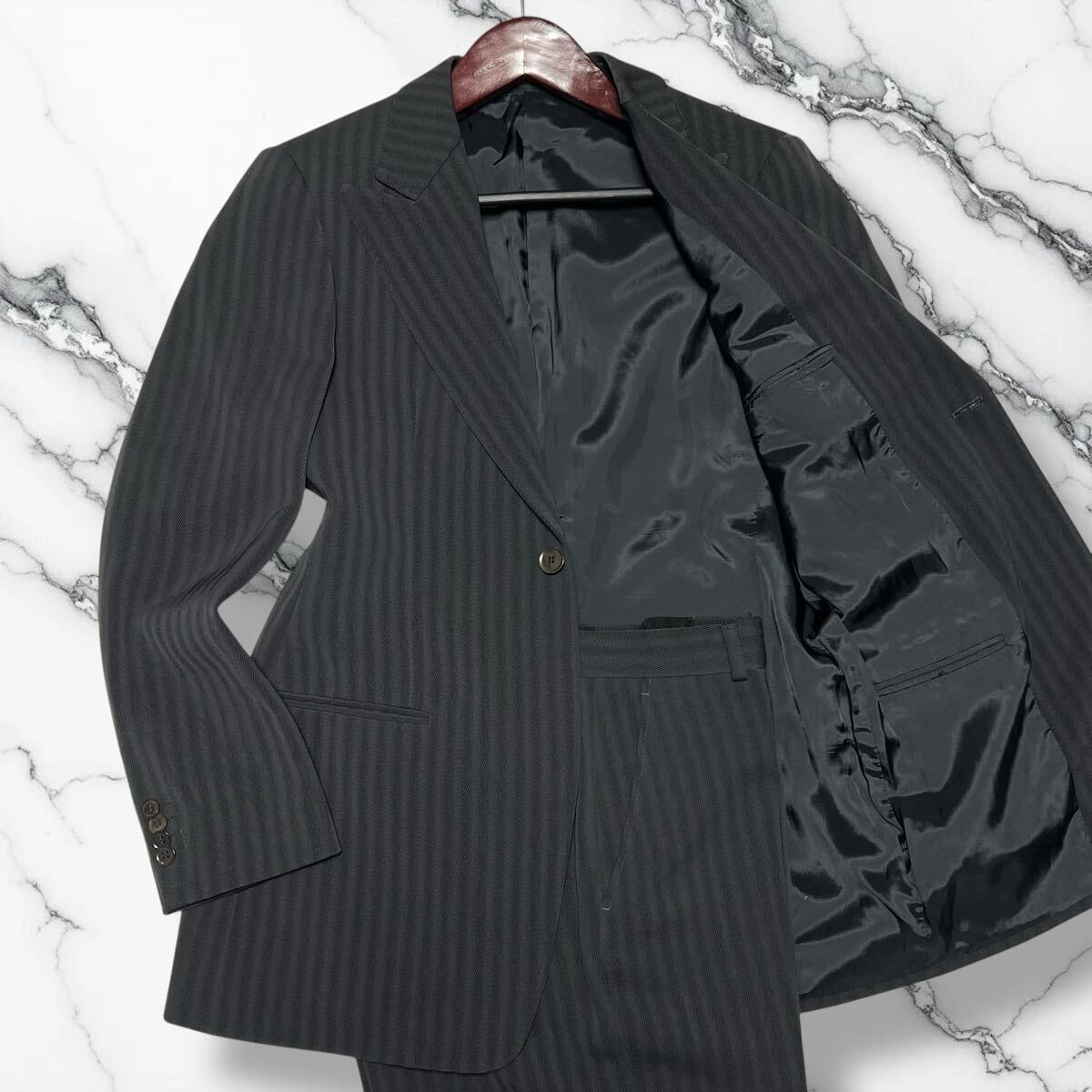 - 美麗品◎XLサイズ位!!アルマーニコレッツォーニ【最高級の逸品】ARMANI ストライプ セットアップ スーツ グレー ウール 総裏 秋冬◎メンズ