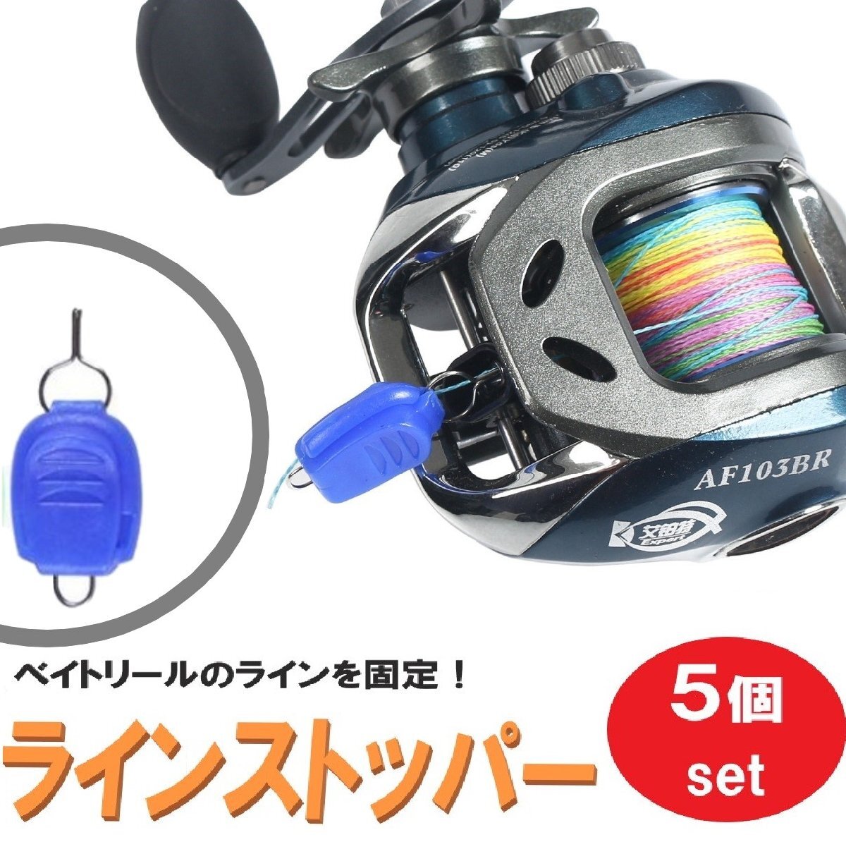- ☆送料コミコミ☆ ラインストッパー ブルー 5個セット 徳用 ベイトリール 糸巻き込み防止
