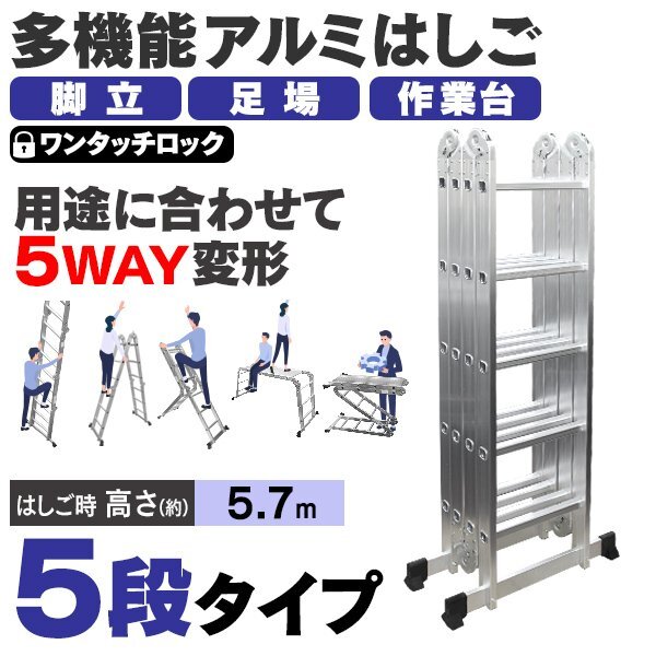 - 新品 多機能はしご 5.7m 耐荷重150kg 5段タイプ 万能 アルミはしご 脚立 足場 折りたたみ スーパーラダー 洗車 カーポート 雪下ろし