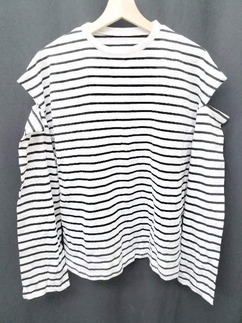 > ◇ Θ ◎ ●未使用● GRL タグ付き ボーダー オープンショルダー 長袖 カットソー サイズF ホワイト ブラック レディース P
