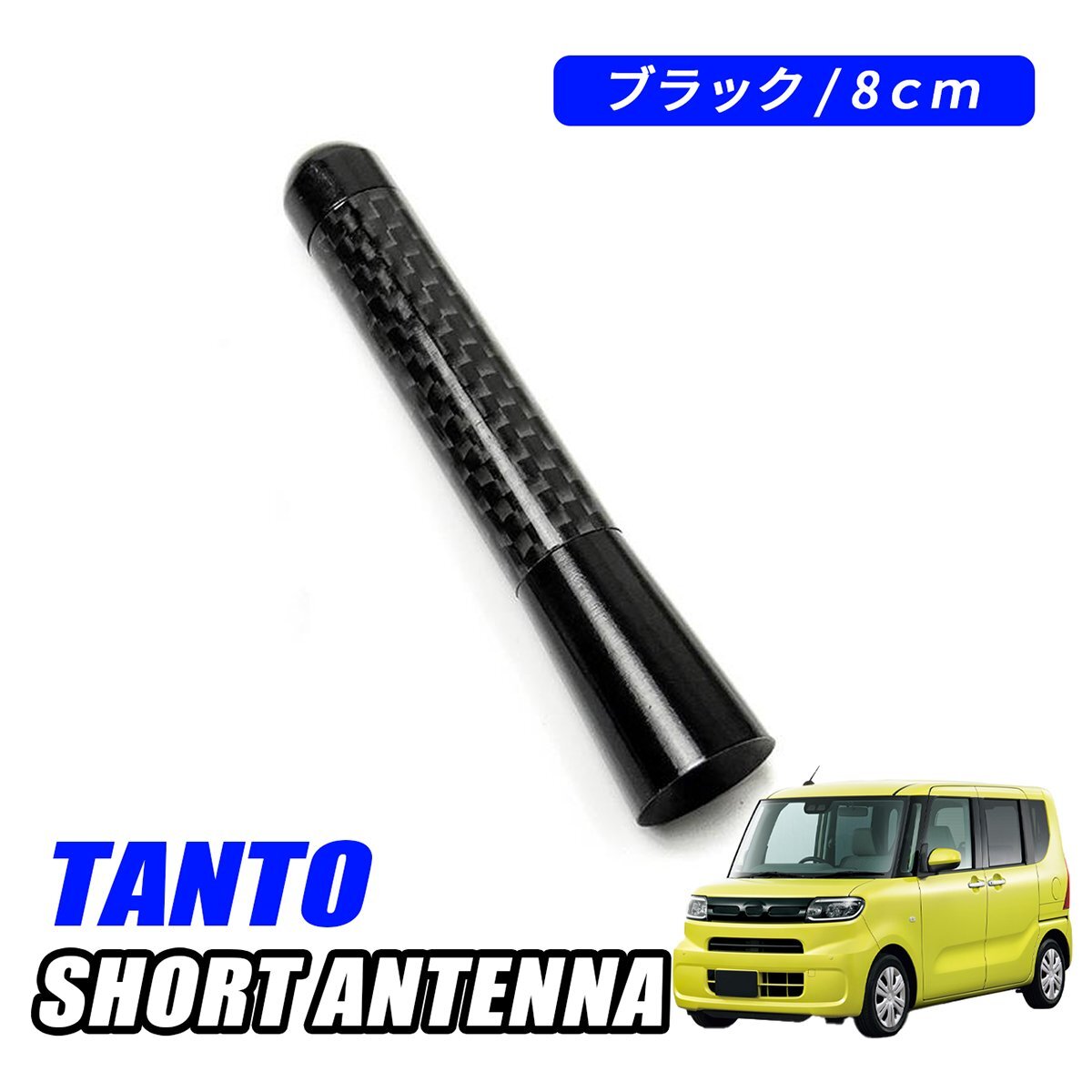 > タント カスタム ショートアンテナ 車 アンテナ 簡単取付 ヘリカルアンテナ 高感度 ブラック カーボン調 8cm カスタム パーツ ドレスアップ