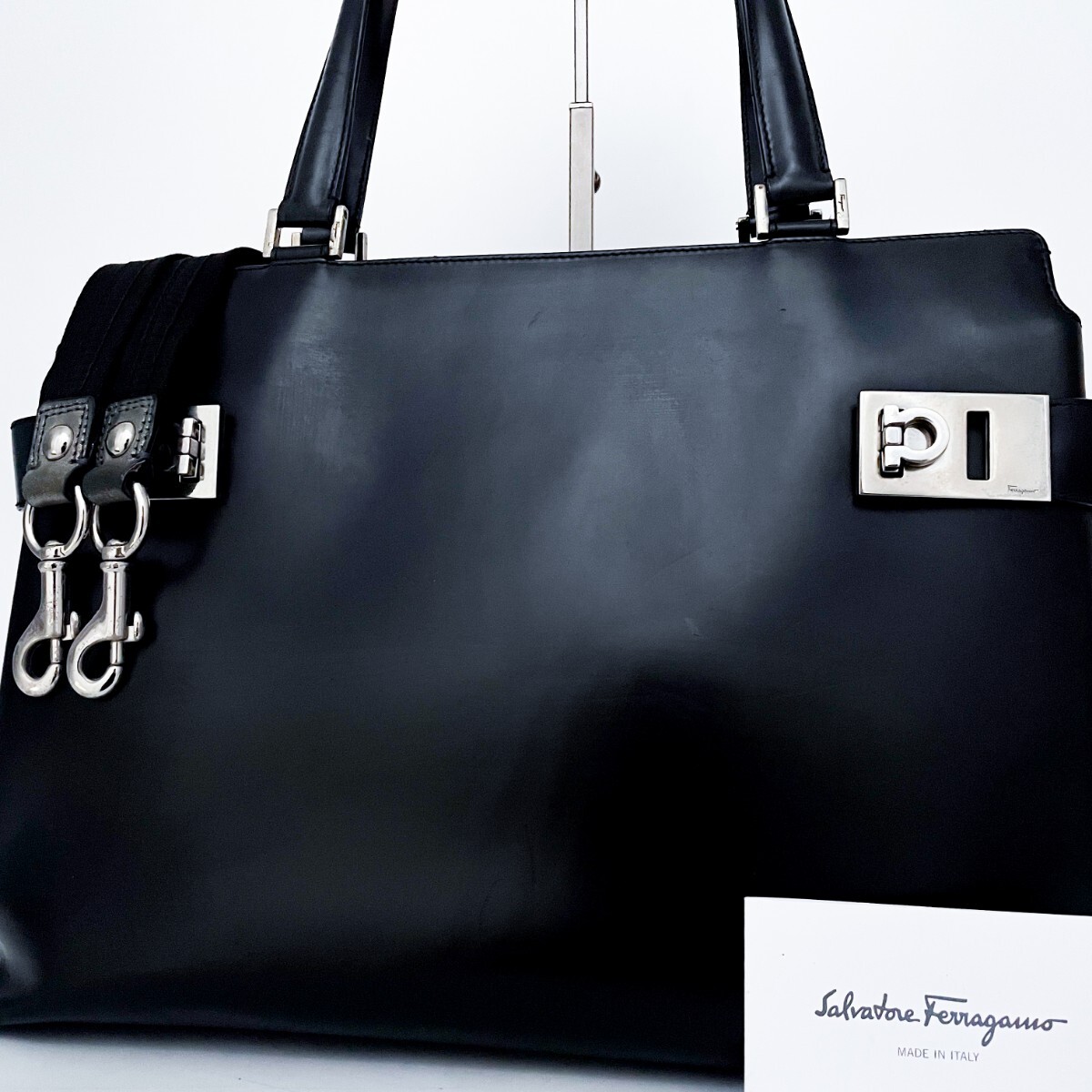 - 1円■入手困難■最高級ライン■最大サイズ■カード付■Ferragamo フェラガモ 2way トートバッグ ビジネス A4 メンズ レディース レザー 黒