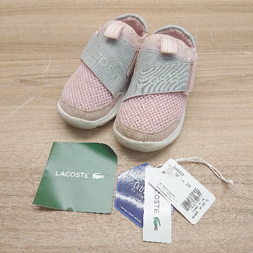 > ◇ ◎ LACOSTE ラコステ キッズ ロゴ かわいい カジュアル スニーカー シューズ サイズ23A ピンク グレー レディース E