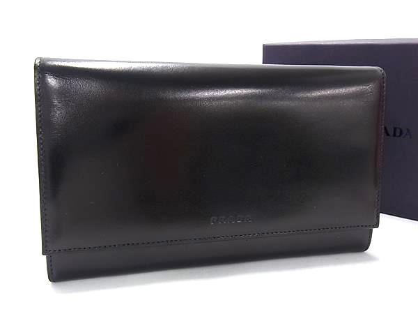 > 1円 ■美品■ PRADA プラダ レザー 二つ折り 長財布 ウォレット 札入れ 小銭入れ カード入れ メンズ レディース ブラック系 FQ2417