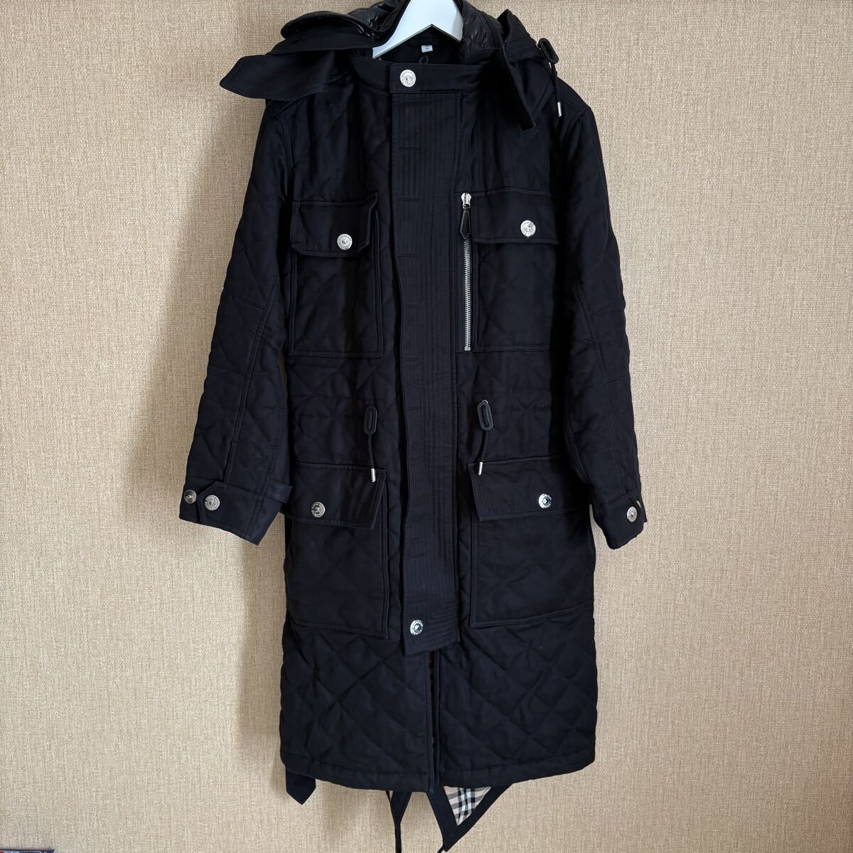 - バーバリー ティッシ期 フード付 ロング トレンチコート モッズコート メンズ ブラック ロングコート