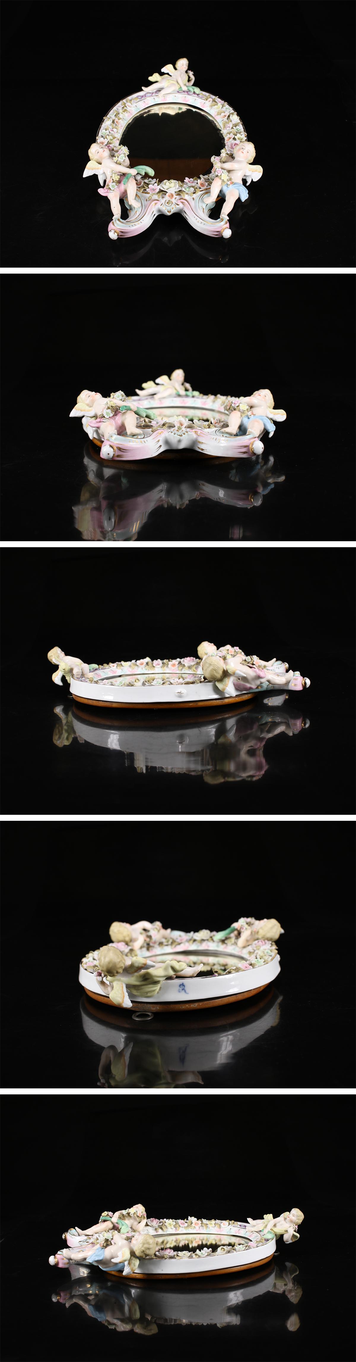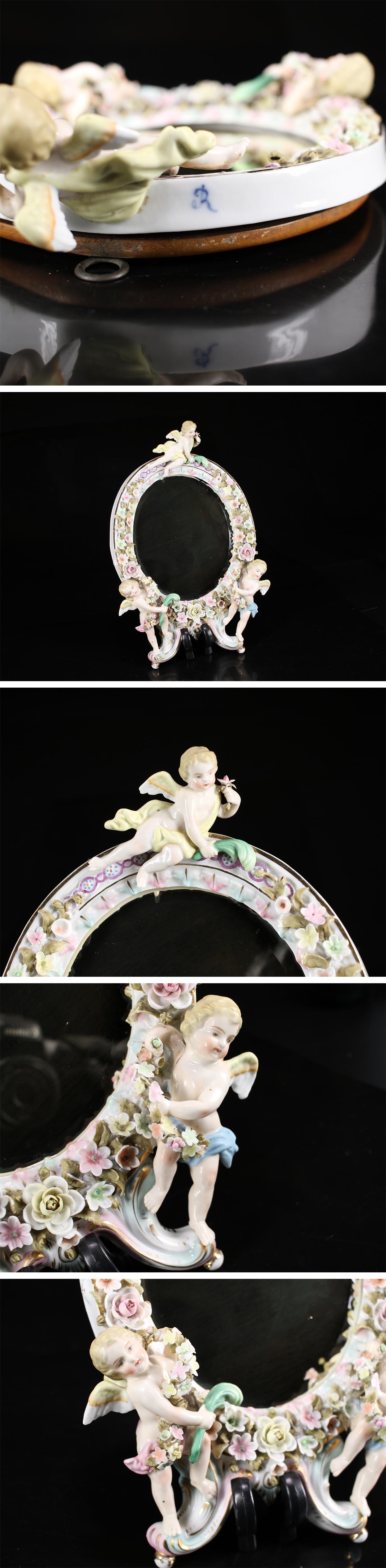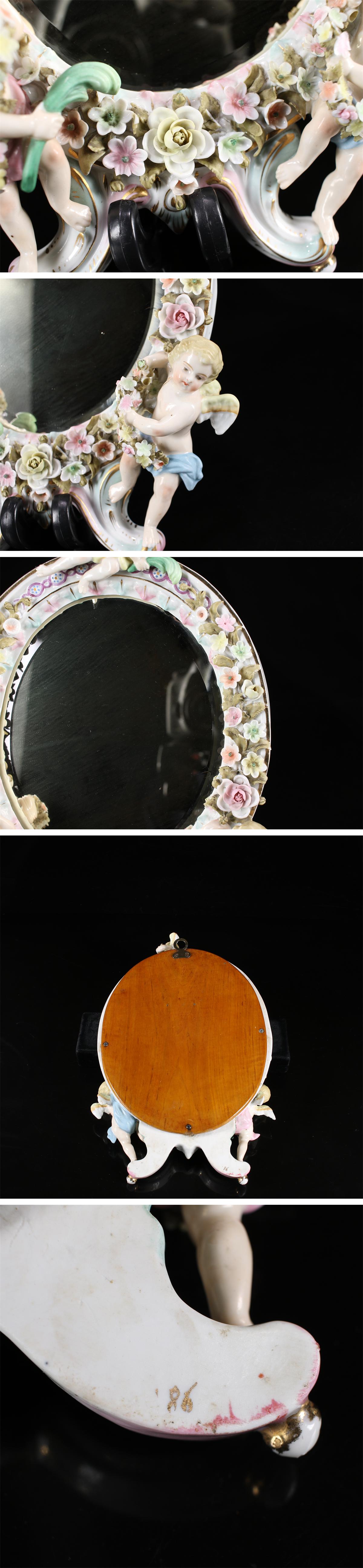- 【吉】CJ777 十八世紀 初期マイセン DRESDEN 【ドレスデン】 色絵天使 鏡 壁掛 幅32×21㎝/美品!