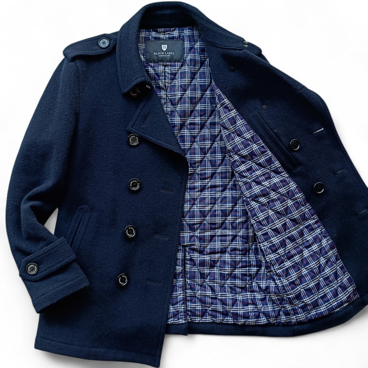 - 美品 M ブラックレーベルクレストブリッジ ウール ピーコート 内側キルティング 紺 ノバチェック 中綿 羊毛 P BLACKLABEL CRESTBRIDGE