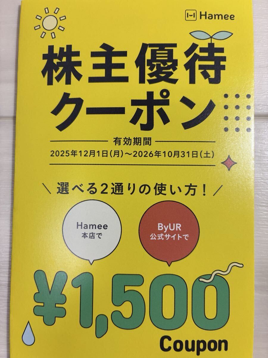 - 最新 Hamee 株主優待クーポン 3000円分 ネクストエンジン ByUR 有効期限2026年10月31日 コード通知 送料無料