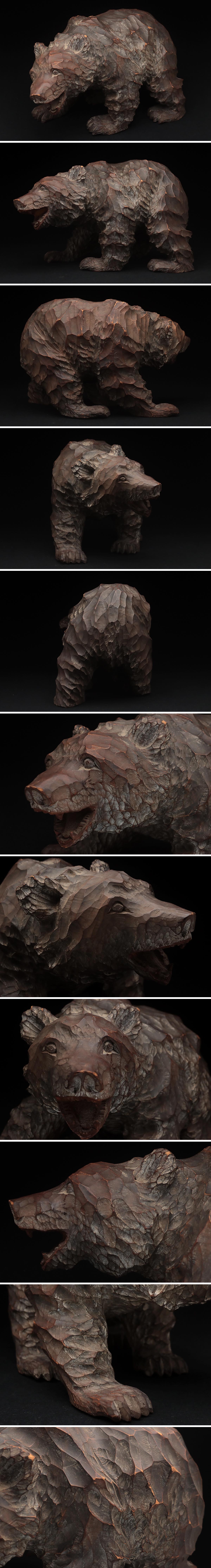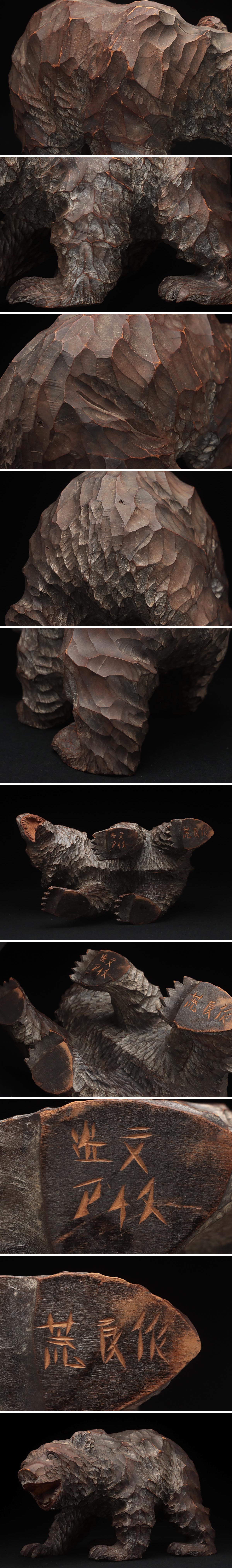 > JQ037 【近文アイヌ 荒良作】旭川系 アイヌ民芸 木彫り熊「吠え熊」置物 幅36.8cm / 重3kg 北海道民藝 伝統工芸 木工古美術 検)八雲