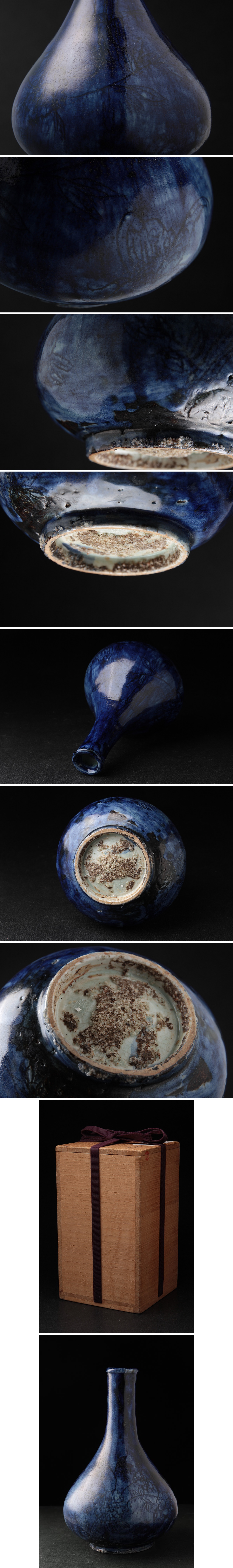 - FD986 朝鮮美術 李朝瑠璃釉牡丹文徳利・瑠璃釉草花文瓶 高17cm 砂高台 木箱附・花瓶・花入・花生 朝鮮古陶 朝鮮古美術 酒器