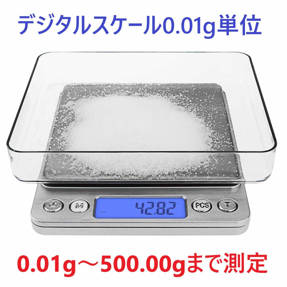 > デジタルスケール電子天秤 0.01g~500g 精密計量器 風袋引き機能付き 料理用電子はかり 測り クッキング キッチン トレー付 電池式量り計り