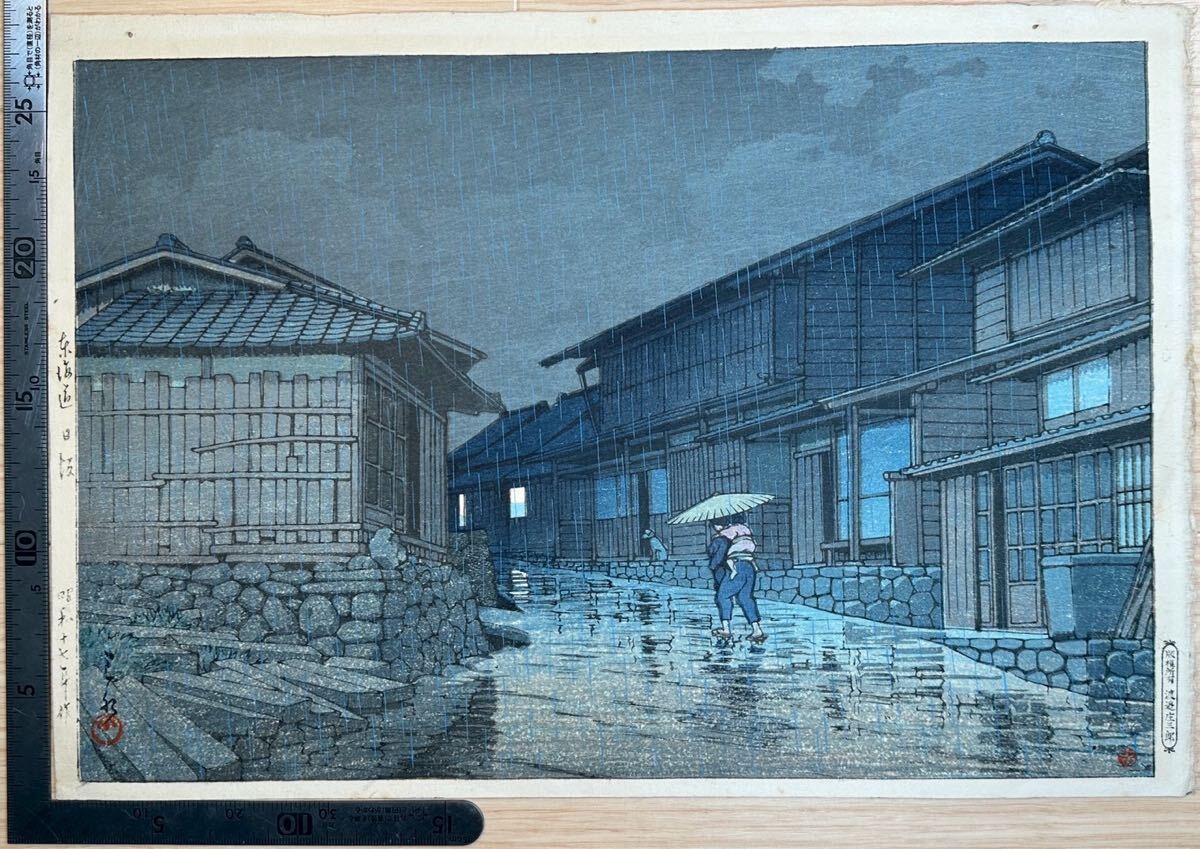 > 【真作】東海道日坂 川瀬巴水 縦長印 ワタナベ6mm赤丸印 初摺 浮世絵 ukiyo-e 木版画 風景画 中国唐物唐本 古筆古文書和本 #2023