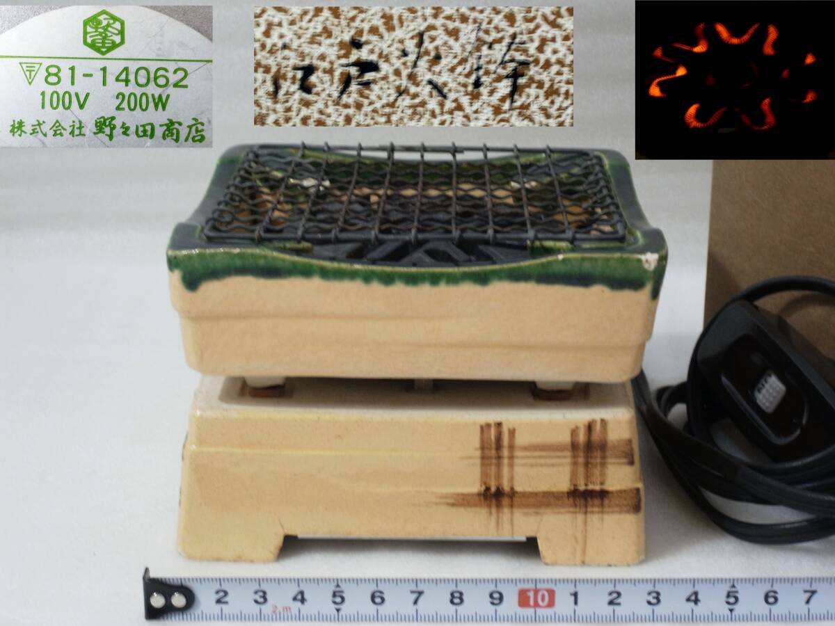 - 3★野々田商店製 煎茶用炉 江戸火鉢 織部 電熱 炭型電熱器 100V200W 81-14062 通電確認済 煎茶道具